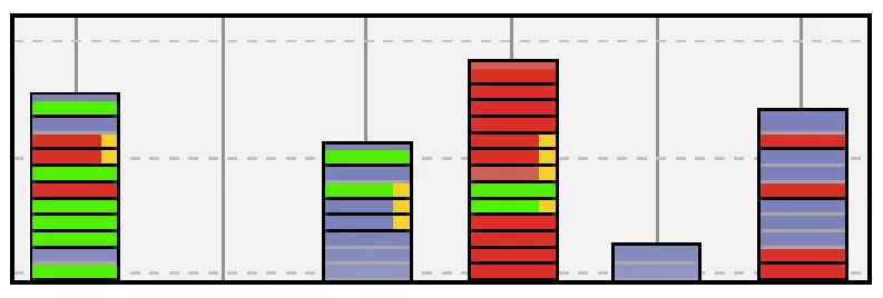 Figure 2 : Exemple de classes de molécules représentées sous la forme de piles. Chaque élément d’une pile correspond à une feuille de l’arbre (molécule) qui peut être colorée suivant trois